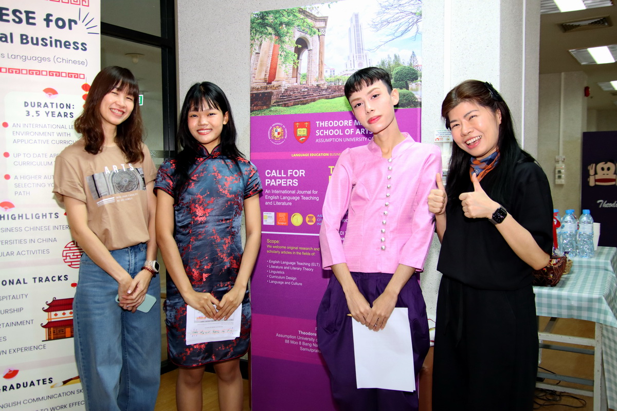 On April 28, 2025, the Theodore Maria School of Arts at Assumption University of Thailand welcomed high school students and their parents for an exciting day of cultural exchange, creativity, and language immersion. The Arts Language Day Camp was held at the University’s Arts Co-working Space, CL Building, 11th Floor, and featured hands-on activities in English, French, Chinese, and Japanese.