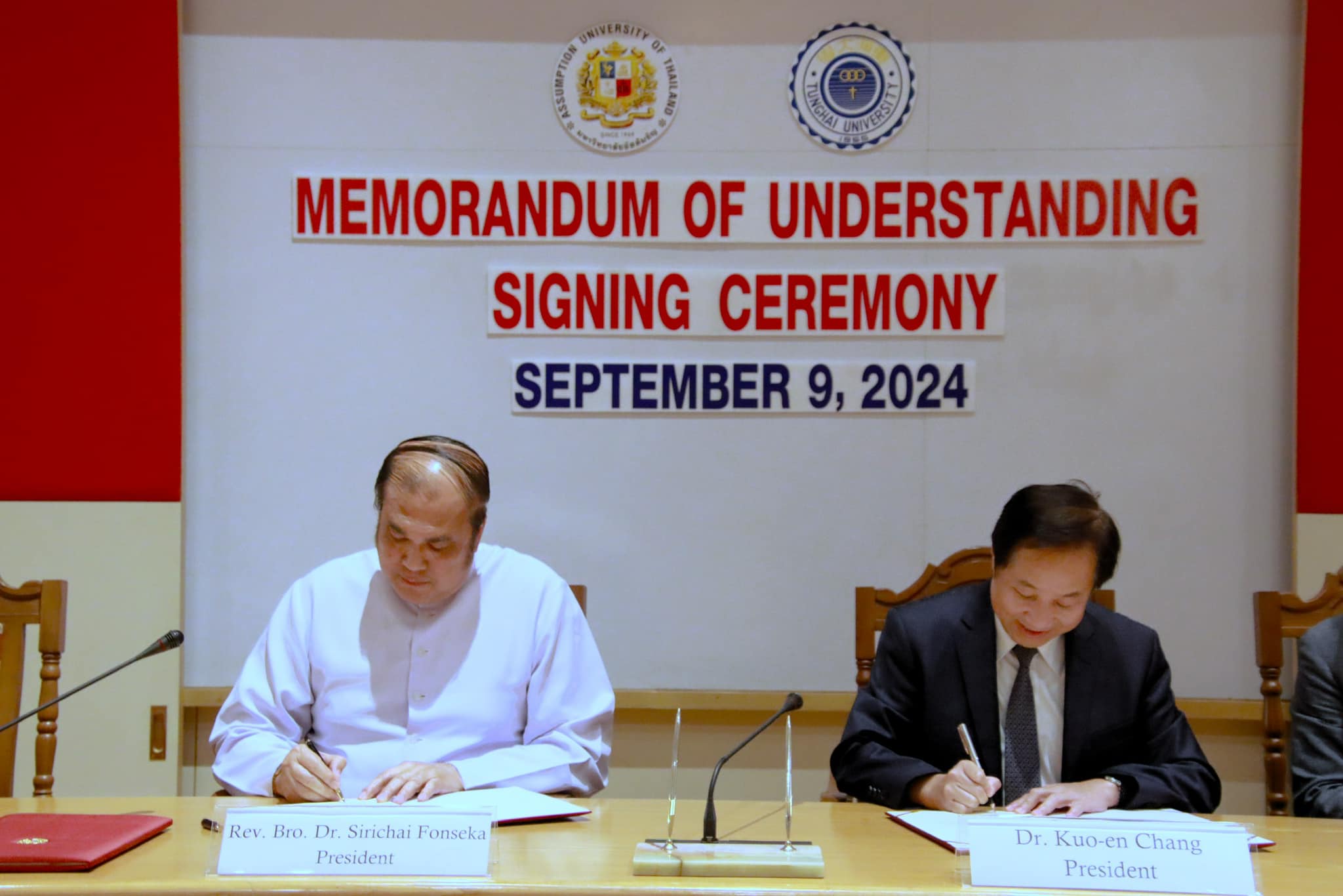 | On September 9, 2024, Assumption University of Thailand (AU) and Tunghai University, Taiwan, officially signed a Memorandum of Understanding (MOU) at AU’s Suvarnabhumi Campus. The signing was presided over by Rev. Bro. Dr. Sirichai Fonseka, President of Assumption University, and Prof. Kuo-en Chang, President of Tunghai University.