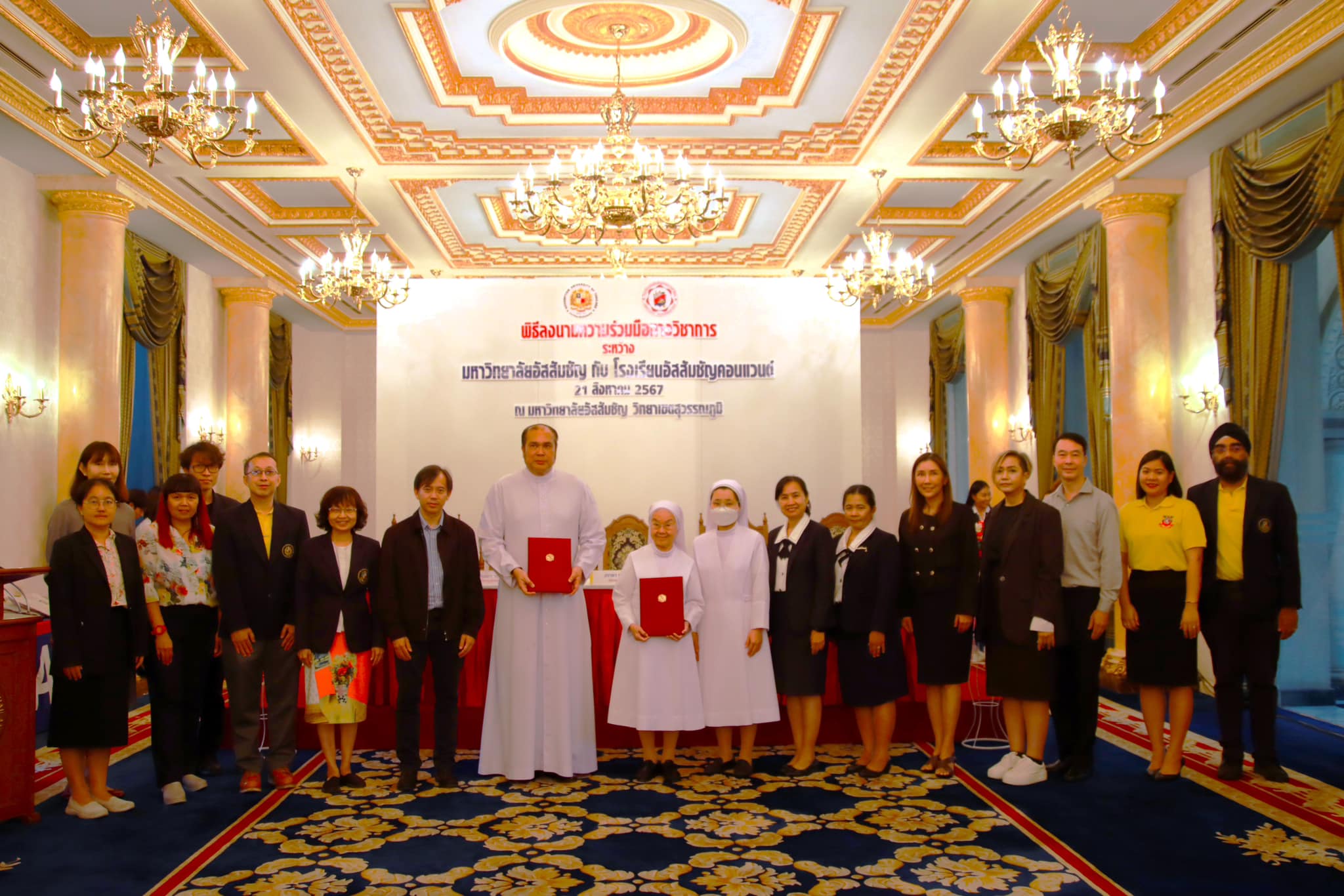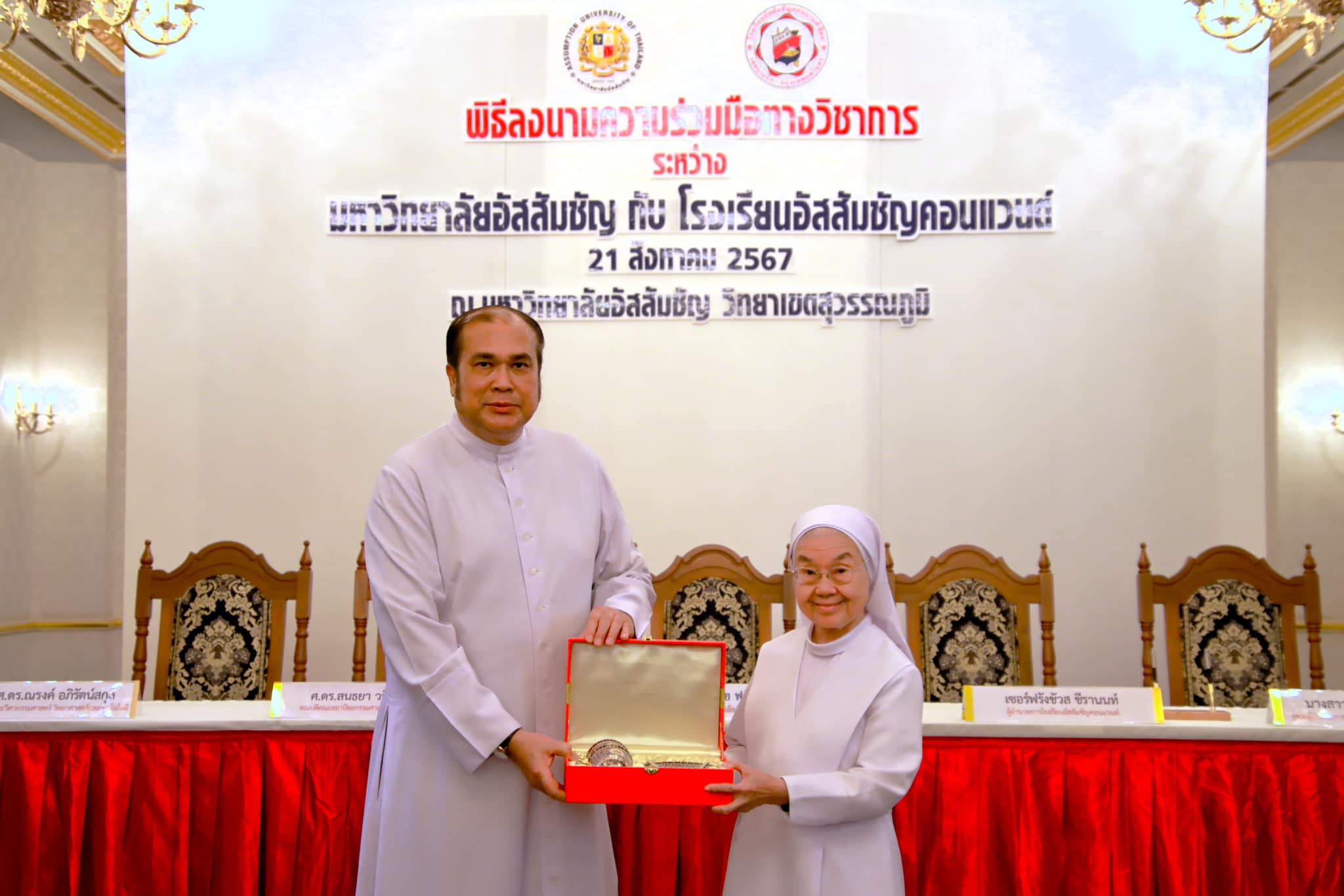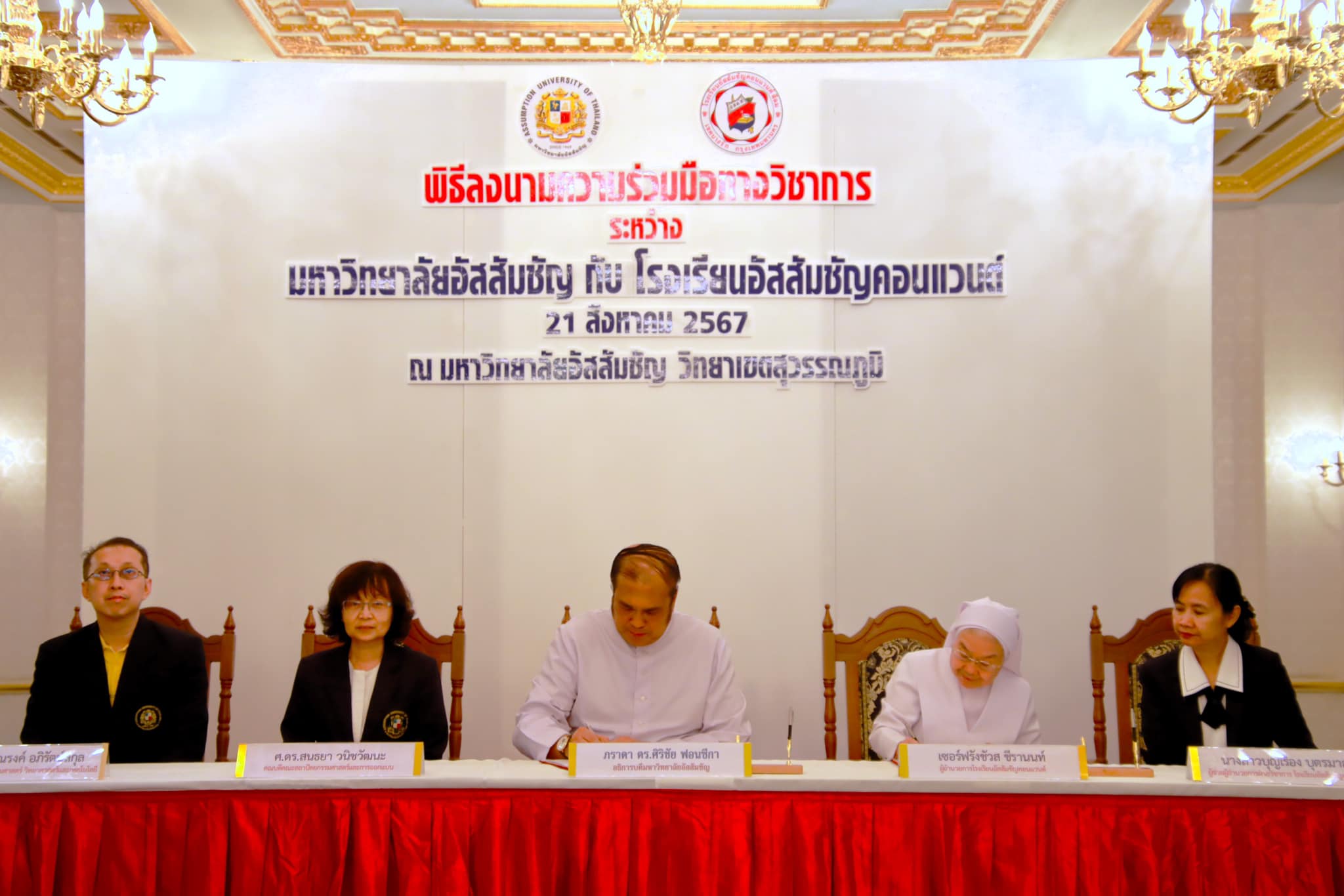 On August 21, 2024, Assumption University of Thailand and Assumption Convent School organized a Memorandum of Understanding (MoU) Signing Ceremony at the Suvarnabhumi Campus, with the aim of enhancing educational opportunities and fostering academic excellence. The ceremony was honored by the visit of Sr. Frangchuas Cheeranont and her team, who toured the learning environment and exhibition organized by the School of Architecture and Design at Assumption University.