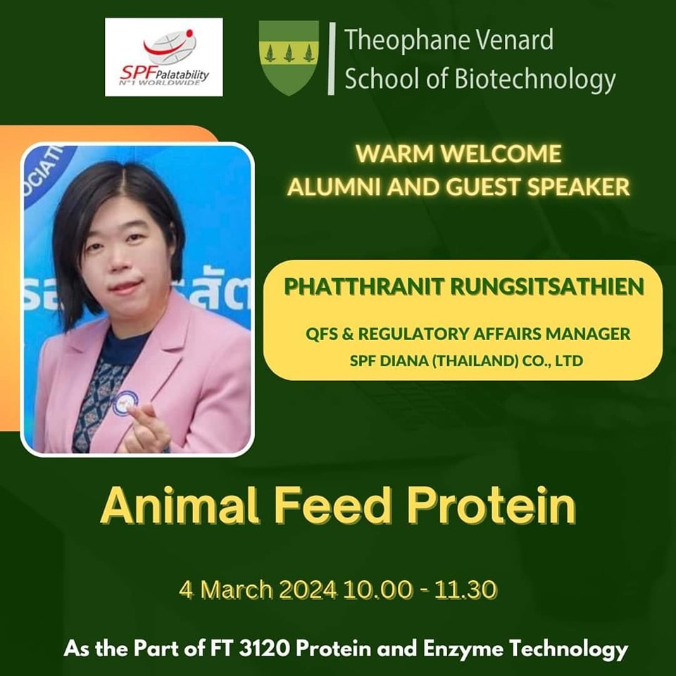 The Theophane Venard School of Biotechnology at Assumption University proudly organized the Alumni Talk Series to strengthen alumni engagement and inspire current students. The program invites alumni from diverse industries to return and share their professional experiences, insights into business and innovation, as well as updates on new trends and technologies. By connecting real-world practices with classroom learning, the series motivates students to see how their studies can shape future careers and entrepreneurial opportunities.