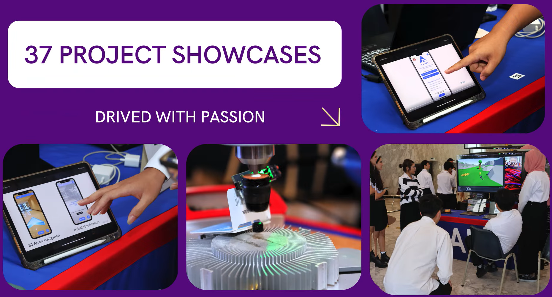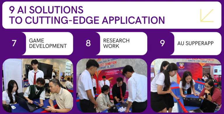 | On February 28, 2025, students from the Vincent Mary School of Engineering, Science and Technology (VMES), Assumption University, presented 37 senior projects at the VMES Lobby. Each project demonstrated students’ technical skills, creativity, and innovative thinking, covering areas such as AI-powered applications, IoT solutions, mobile and web apps, games, and AU Super Apps.