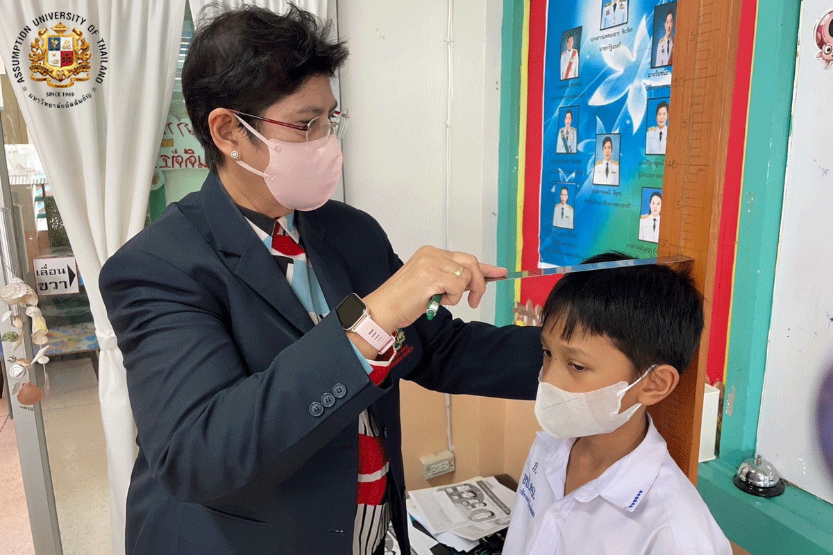 | On December 2 and 18, 2024, the Bernadette de Lourdes School of Nursing Science (BLNS), Assumption University of Thailand (AU), conducted health assessments and consultations for fifth and sixth-grade students at Klong Kaja (Pongsombat-Bumrung) School, a partner institution under an MOU with AU.