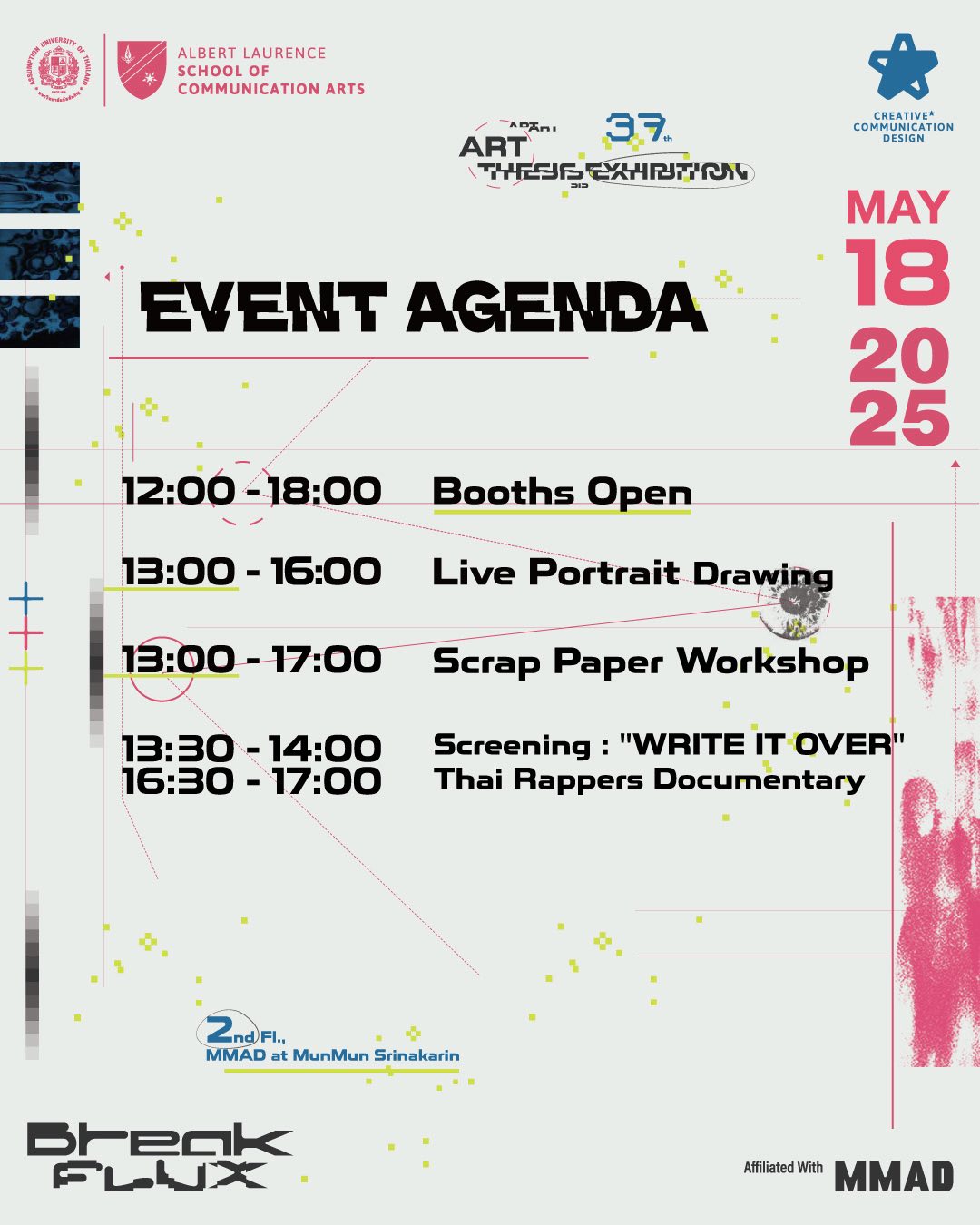 Come explore identity, passion, and creative spirit at Break Flux, the 37th Art Thesis Exhibition, held from May 13–23, 2025 at 2nd Floor, MMAD, MunMun Srinakarin (Seacon Square).